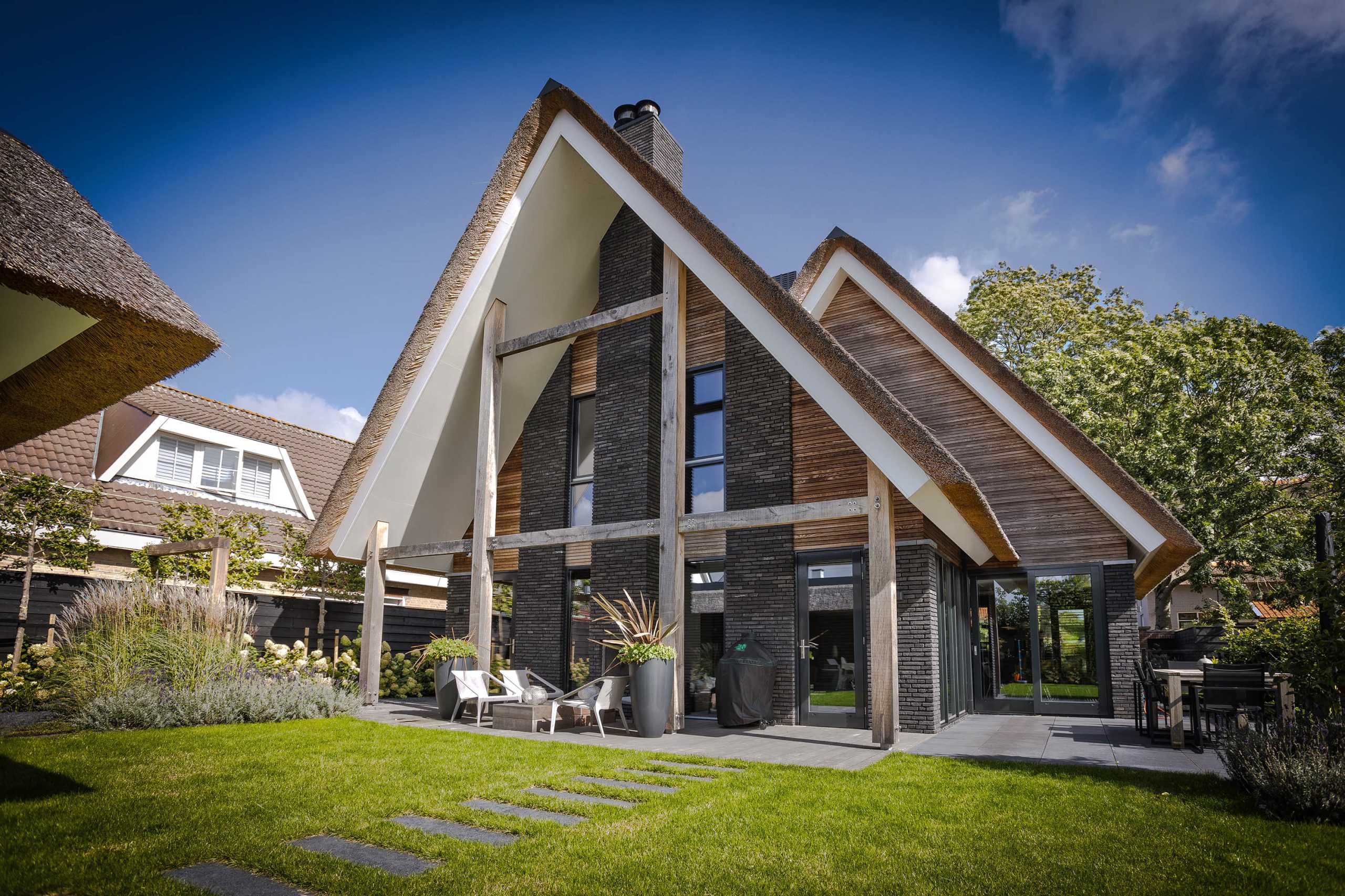 In Barendrecht bouwden we deze mooie villa met rieten kap.